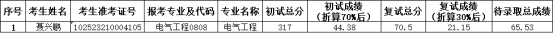 公司2023年硕士研究生第批调剂复试工作已结束,依据72779太阳集团2023年硕士研究生复试录取工作实施细则,复试成绩(包括同等学力加试科目)不及格者不予录取。现将公司第批调剂已参加复试的考生成绩公示如下: