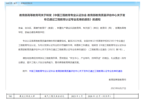 院电气工程及其自动化专业通过工程认证