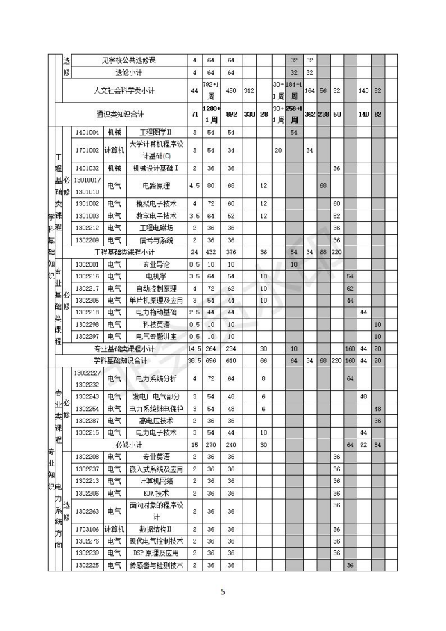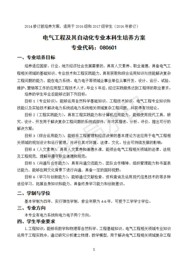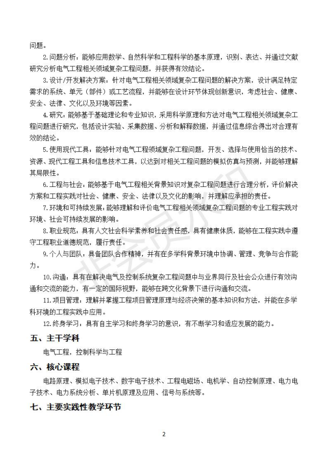 18版电气工程及其自动化专业培养方案