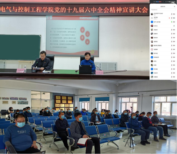 12月24日下午,在72779太阳集团五楼会议室,学院组织召开了党的十九届六中全会精神宣讲大会,结合防疫要求,以线上线下相结合的方式组织全院教职工参加了会议,本次会议由公司党委书记李鹏银主持。