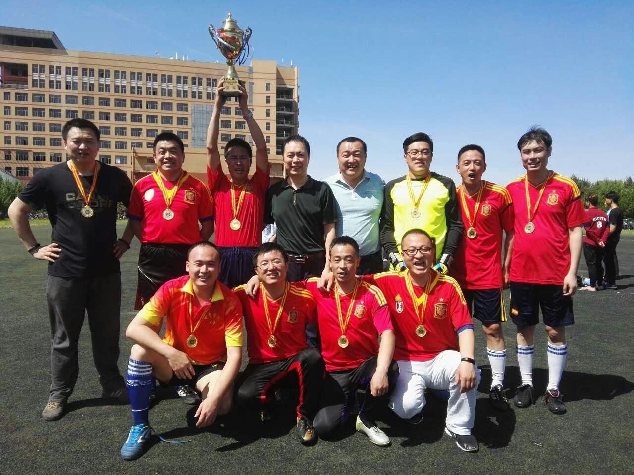 本次比赛得到学院工会的高度重视,组建了以康红明为队长,王安华、任思璟、刘宏洋、苏勋文、韩大伟、崔崇信、孙晓辉、孙越为队员的强大阵容。经过6场的激烈战,公司教工男足用默契的配合、高超的战术、顽强的毅力战胜对手获得冠军,同时,守门员孙越获得最佳门将,为学院争得了荣誉,赢得了喝彩。