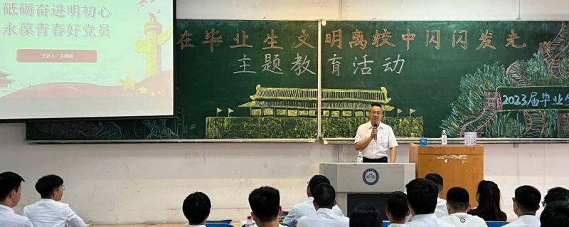 党委书记李鹏银与毕业生党员面对面交流,以“砥砺奋进明初心,永葆青春好党员”为题讲解“最后一次党课”,他对即将毕业离校的毕业生党员提出殷切期望,围绕廉洁从业、坚定信念、铭记身份三个方面进行深入讲解,为离校启航的青年党员备好红色“精神行囊”,让全体毕业生党员更加深刻明确作为青年党员的使命与担当,进一步坚定理想信念,更有信心立志做一面旗帜,树立榜样,充分发挥党员先锋模范带头作用。